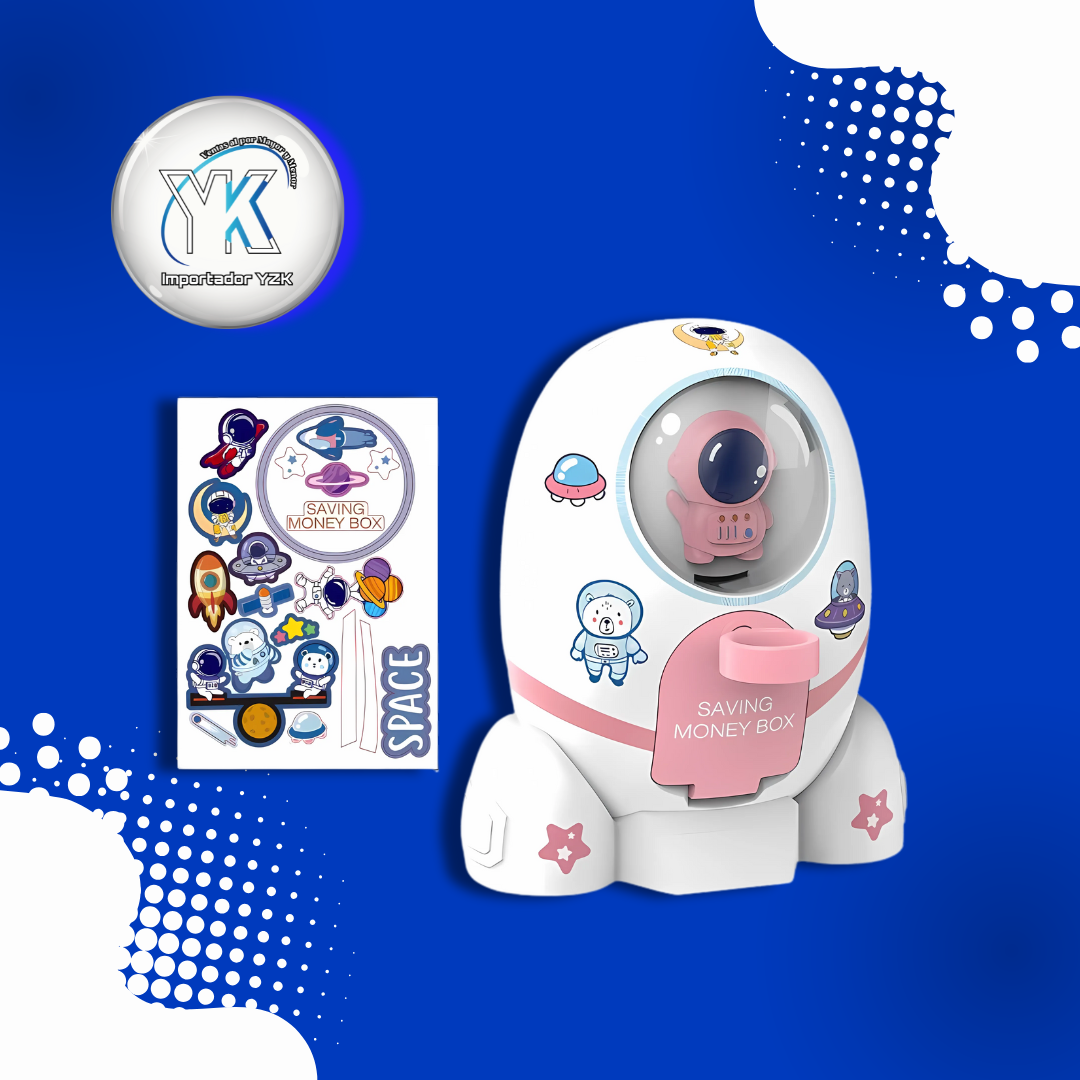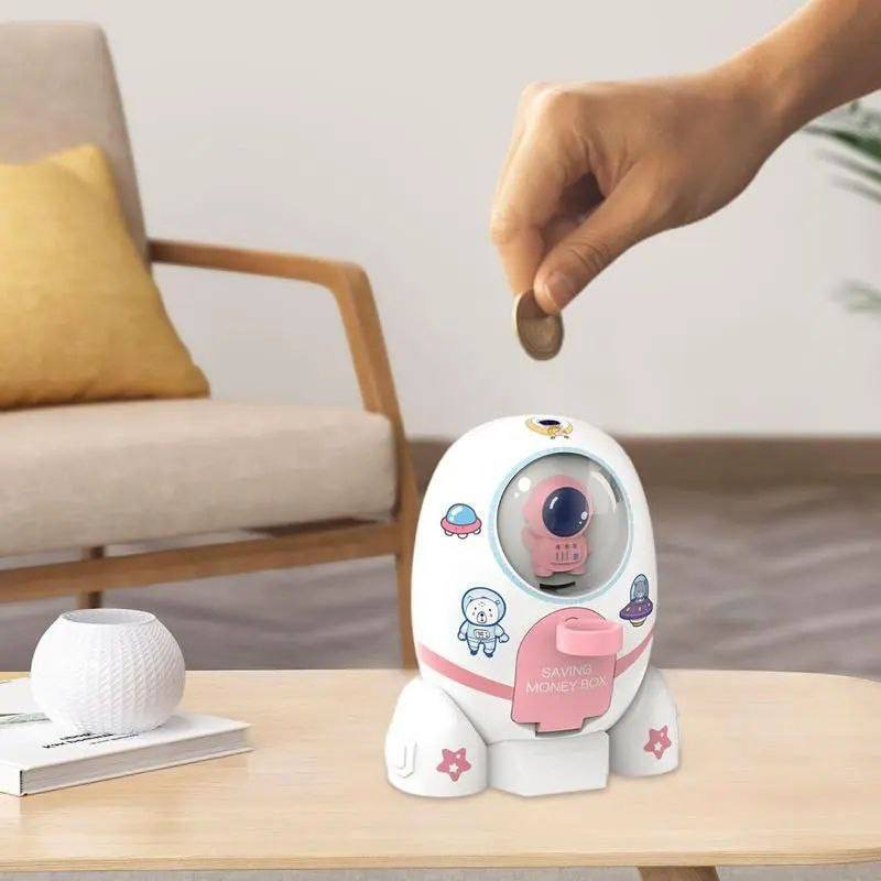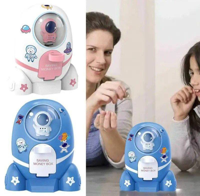 Alcancía🌈 💵Minimáquina con un diseño de muñeco espaciales 👨🚀🌜💰 para niños y niñas , caja seguridad para niños, monedas, ahorro de efectivo, depósito seguro un juguete creativo y divertido