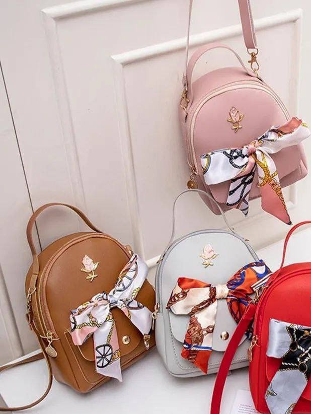 Mini mochila con lindo lazo👝 multifunción de cuero para mujer🥰, bolso de hombro de lujo, de lindos colores pasteles 🌈cómoda de llevar